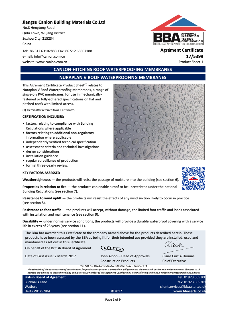 Baseando-se em um conjunto completo de linhas de produção italianas importadas e plataformas inovadoras, como o Suzhou Advanced Technology Research Institute e o Centro de Certificação e Testes CNAs, o Canlon melhorou bastante o desempenho dos sistemas de cobertura de uma camada única em termos de resistência ao envelhecimento, mais impermeabilizados, isolamento térmico, resistência ao vento, etc. As membranas TPO/PVC atingem 15.000 e 12.000 horas, respectivamente , e o índice de resistência ao vento atinge 11,5kpa e 9,3kpa, respectivamente , fornecendo pelo menos 25 anos de vida útil para o sistema fotovoltaico, construção única e proteção de ciclo de vida total.