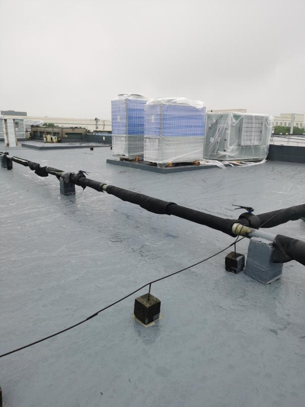 Primeiro, o pessoal de manutenção limpou novamente o substrato do telhado, reparou defeitos locais, removeu equipamentos do telhado, adicionou tubos de escape, pintou o revestimento de resina epóxi para fixação de areia e, finalmente, realizou a instalação de um revestimento impermeável de 1,5 mm de espessura para garantir totalmente a firmeza. e estabilidade da camada impermeável.