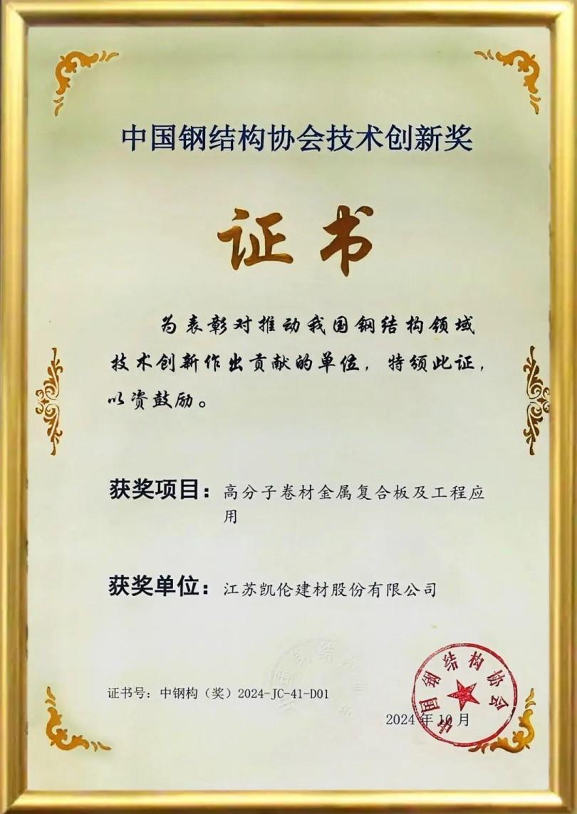 Em 28 de março de 2025, a 11ª Conferência da Indústria do Sistema Nacional de Gabinetes de Metal foi realizada em Shaoxing, Zhejiang. O painel 'Polymer integrado e o aplicativo de engenharia Membrane Metal Integrated Application' ganhou o 2024 'Technology Innovation Award ' da China Steel Struction Association nesta conferência . Representa o reconhecimento autoritário da inovação do Painel Integrado do Canlon TMP pela China Steel Struction Association.