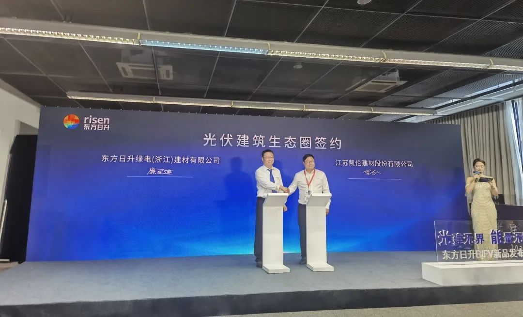 Na sessão de assinatura ecológica de edifícios fotovoltaicos organizada pela conferência, Canlon deu as mãos à Risen Green Power (Zhejiang) Building Materials Co., Ltd. integração fotovoltaica em edifícios.