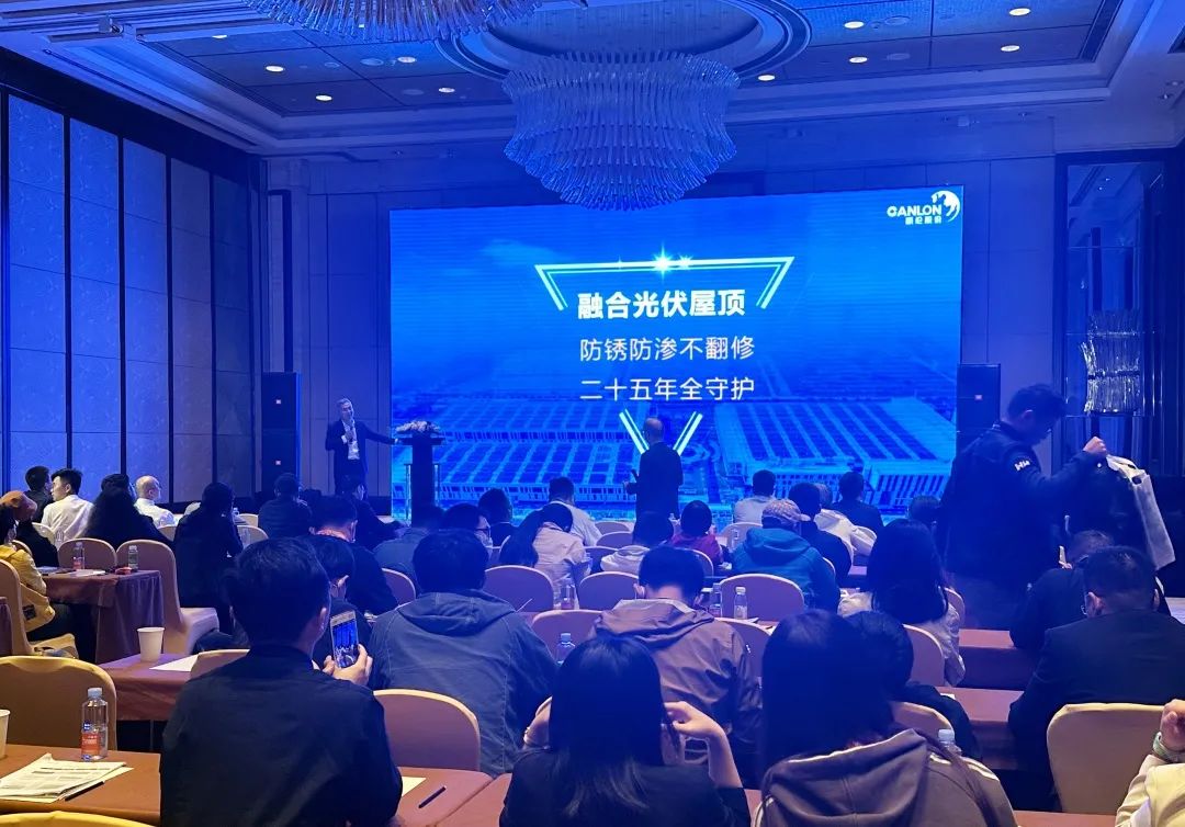 Na Conferência Global de Tecnologia de Fronteira Fotovoltaica, Li Zhongren, Presidente da CANLON, foi convidado ao palco para compartilhar o tema 'Apoio a Telhados de Baixo Carbono, --Soluções de Polímeros para Corrosão e Impermeabilização de Telhados'.Através da análise dos problemas comuns da tecnologia de telhados de telhas de aço coloridas, é claramente apontado que 'o telhado de telhas de aço coloridas expostas não é econômico nem de baixo carbono', e o paradoxo da redução de emissões de 'Renovar o Placa de aço no telhado, e a redução de carbono fotovoltaico é em vão' é proposta e, assim, apresenta as vantagens de aplicação das membranas de polímero Canlon em soluções de telhado de telha de aço colorido e assume um compromisso de qualidade com a sociedade de 'antiferrugem , anti-infiltração e sem renovação há 25 anos'.