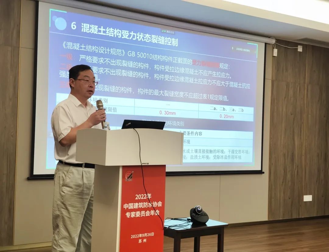 Hu Jun, presidente da Hangzhou Jintang Building Waterproof Co., Ltd. e engenheiro sênior de nível professor, compartilhou o tema 'Impermeabilização Rígida e Auto-Impermeabilização de Estruturas de Concreto', apresentou os pontos de projeto e construção de impermeabilização rígida e auto-impermeabilização -impermeabilização de estruturas de concreto, analisando-as em combinação com a demanda atual do mercado.
