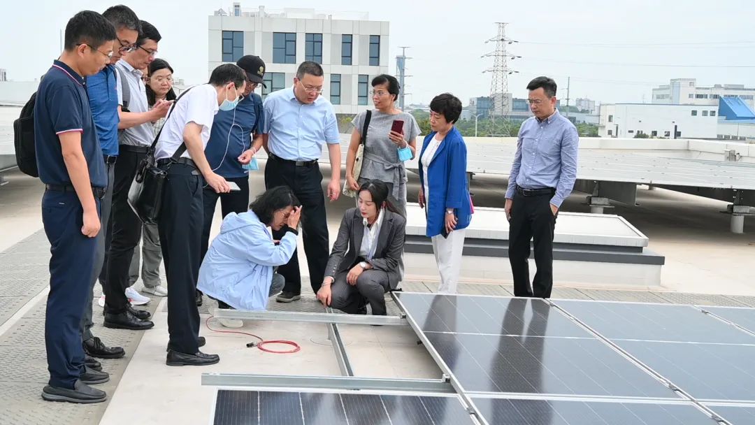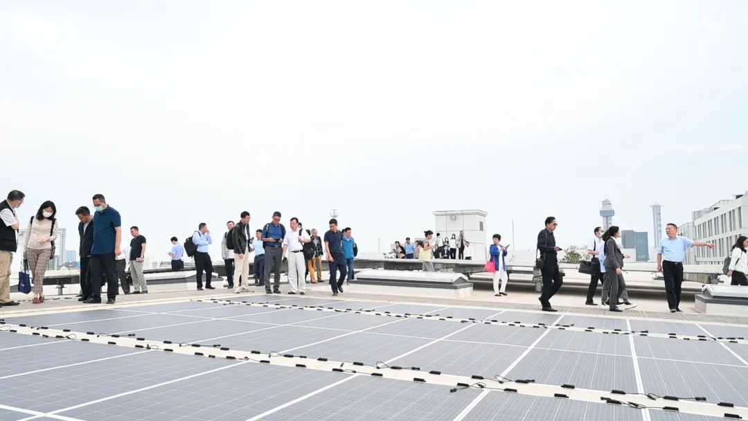 Após a reunião, os especialistas e membros do comitê foram ao telhado da planta do Parque Canlon CPCM para visitar o efeito de aplicação prática do sistema de telhado fotovoltaico integrado, e trocar e discutir o projeto e construção do sistema de telhado fotovoltaico no local.