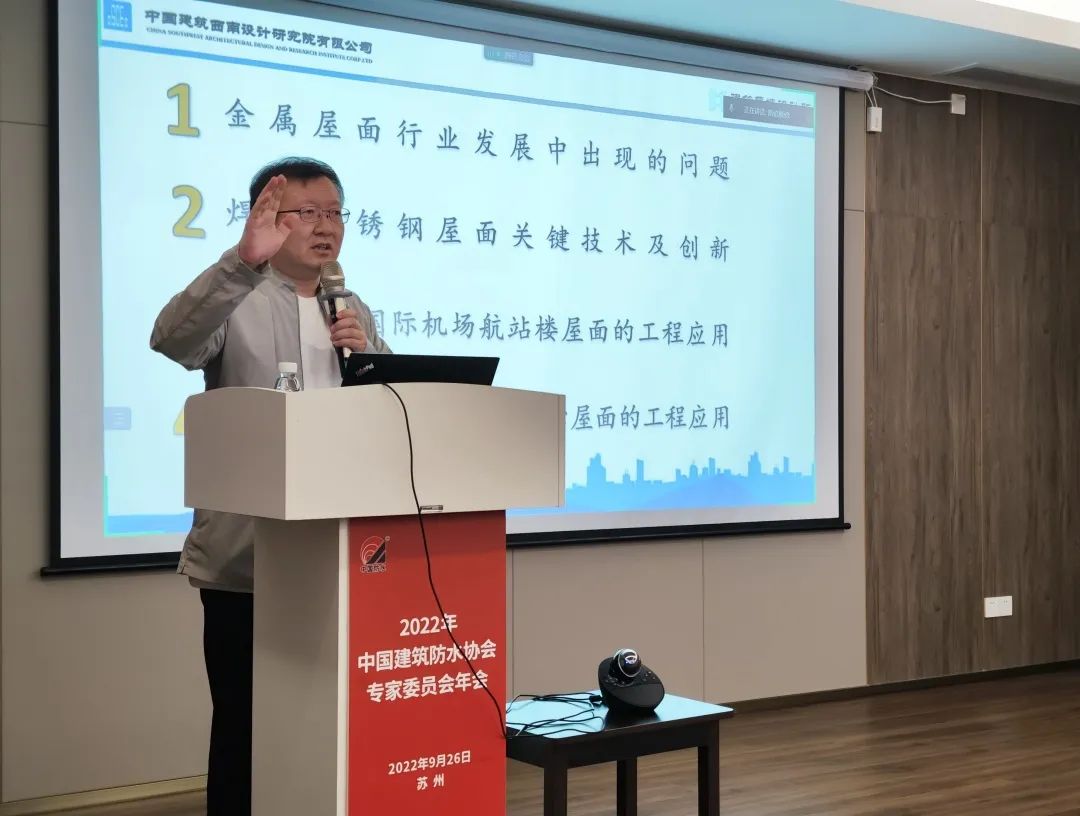 Dong Biao, engenheiro sênior e engenheiro-chefe do Building Curtain Wall Design Institute do China Construction Southwest Institute, compartilhou o tema 'Sistema de soldagem de telhado de aço inoxidável' e apresentou as principais tecnologias e orientações de P&D de produtos de telhado de aço inoxidável inovação.