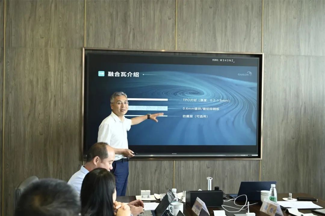 Na sessão de intercâmbio técnico, o Presidente Li Zhongren apresentou a estrutura básica, o esquema do sistema e vários indicadores de desempenho da Canlon Painel de metal revestido TPO (TMP Painel) aos especialistas, incluindo os parâmetros de retardador de chama e vento elevar resistência, mostrou a animação das etapas de instalação, comparou com a camada impermeável abaixo, as vantagens de Painel de metal revestido TPO no controle de qualidade, controle de segurança e até manutenção, e propôs que a anticorrosão física é uma escolha mais simples e confiável para os atuais telhados industriais e comerciais.