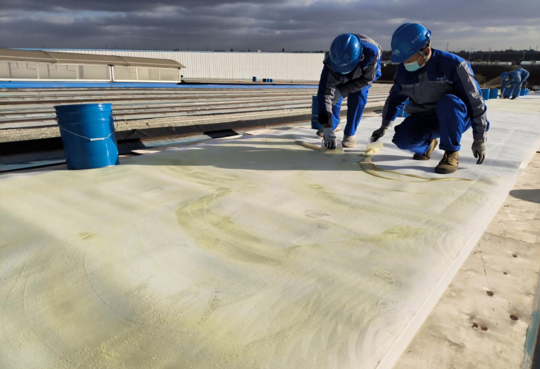 Antes da construção, os artesãos realizaram meticulosos preparativos de retificação e remoção de ferrugem na superfície do substrato da placa de aço original.Após a entrada dos materiais no local, eles foram armazenados conforme a norma.Depois que o neoprene na superfície posterior da membrana estiver uniformemente seco até o ponto em que possa ser colado, ele é então aplicado.