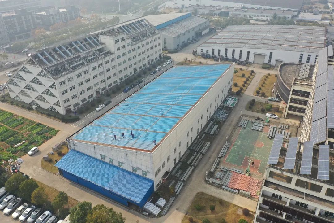 Após uma investigação detalhada no local, os técnicos profissionais da Canlon decidiram otimizar os planos para as oficinas 2# e 3#, respectivamente.Entre eles, a oficina 3# utiliza membrana impermeabilizante de PVC com 1,5mm de espessura (tipo L) para instalação do sistema de colagem completa sem retirar o painel original do telhado, e a instalação fotovoltaica utiliza suporte vertical para conexão;a oficina 2 # remove o painel original do telhado, aplica placas de aço perfiladas em forma de ângulo, usa membrana impermeabilizante TPO de 0,8 mm de espessura (tipo L) para instalação do sistema de ligação completa e usa acessórios para instalar energia fotovoltaica.O trabalho de design abrangente e detalhado e a comunicação técnica foram profundamente reconhecidos pela Rixin Solar.As duas partes se deram bem e rapidamente entraram na fase de instalação.O novo sistema de telhado fotovoltaico integrado foi assim apresentado sob o sol forte——