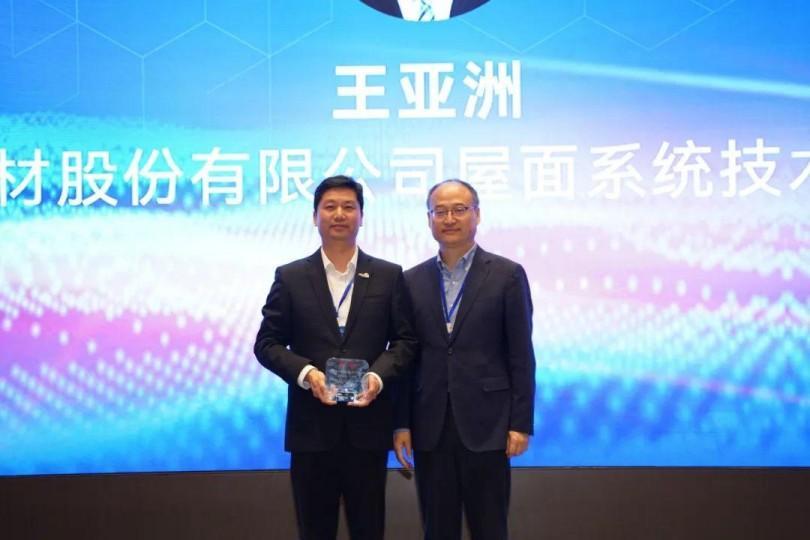 Wang Yazhou, gerente geral do Centro de Tecnologia do Sistema de Cobertismo de Canlon , subiu ao palco para fazer um discurso como representante do Prêmio de Inovação Tecnológica. Ele introduziu o histórico de pesquisa e desenvolvimento, situação de mercado, produtos e vantagens e aplicações de engenharia do painel integrado TMP ®️ . Ele também analisou e comparou as respectivas vantagens das membranas de polímero de PVC e TPO.