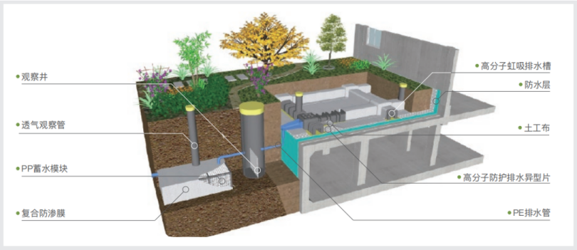 Além disso, o parque industrial desenvolveu e lançou de forma inovadora o sistema de coleta de drenagem de sifão Canlon Planting Roof Sponge City . Este sistema coleta e recicla águas superficiais e infiltradas, alcançando impermeabilização e drenagem integradas, ao mesmo tempo que atende aos requisitos nacionais para conservação de água em edifícios verdes e aos requisitos de infiltração, retenção, armazenamento, purificação, utilização e drenagem na construção de cidades esponjas.