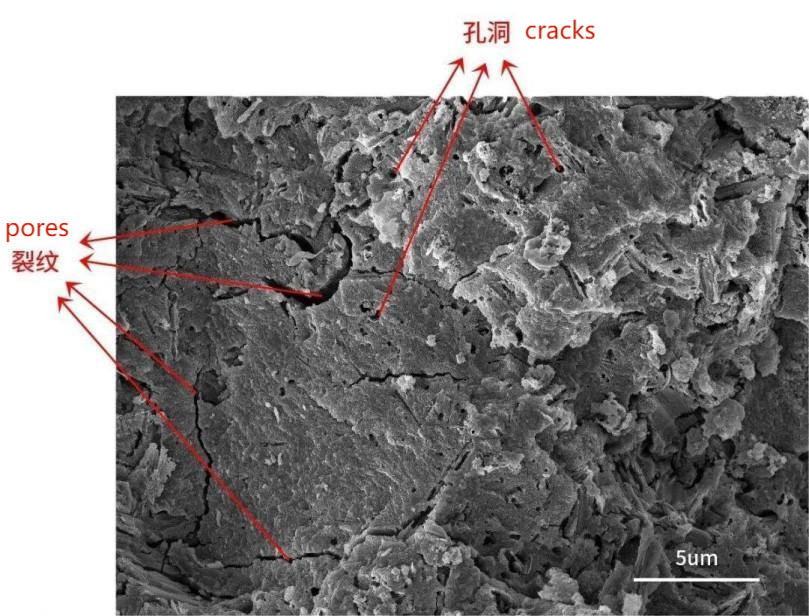 Microfissuras e poros na escala de 5µm